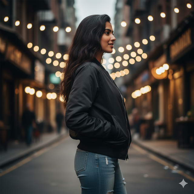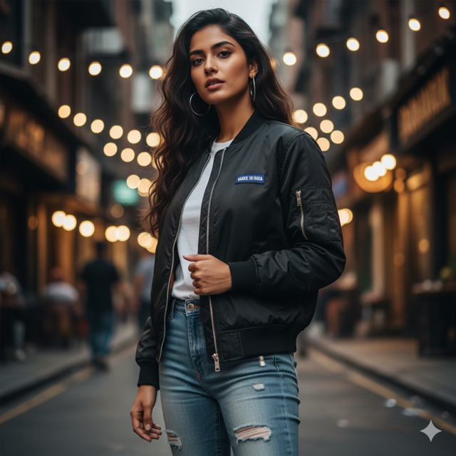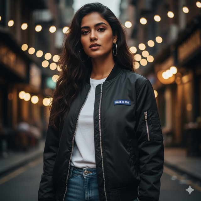 Polyester-nylon (220 GSM), ribbed cuffs, zip front, trendy. Made in India.