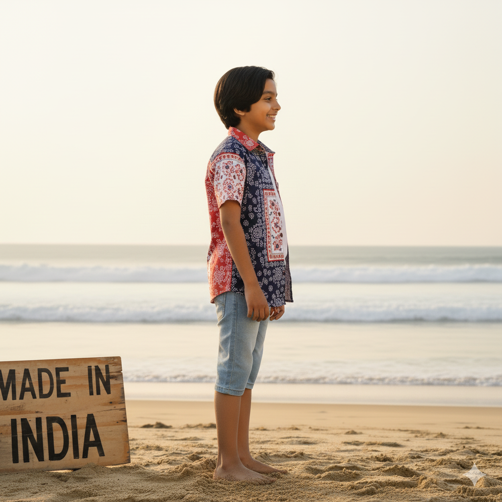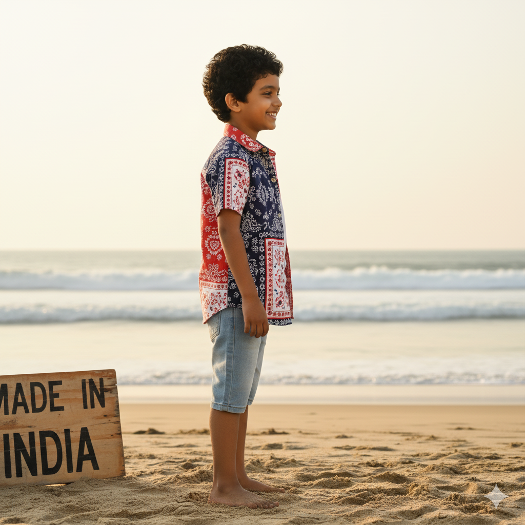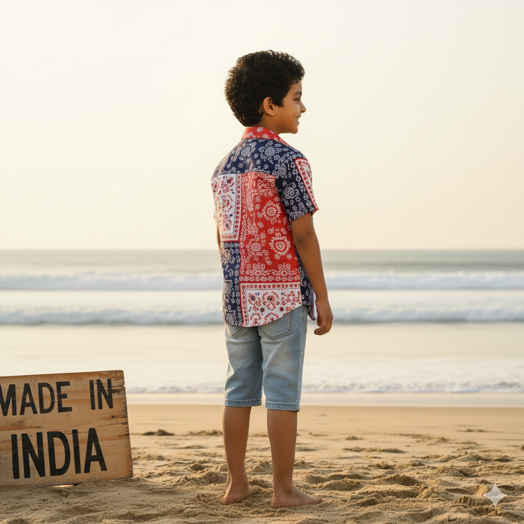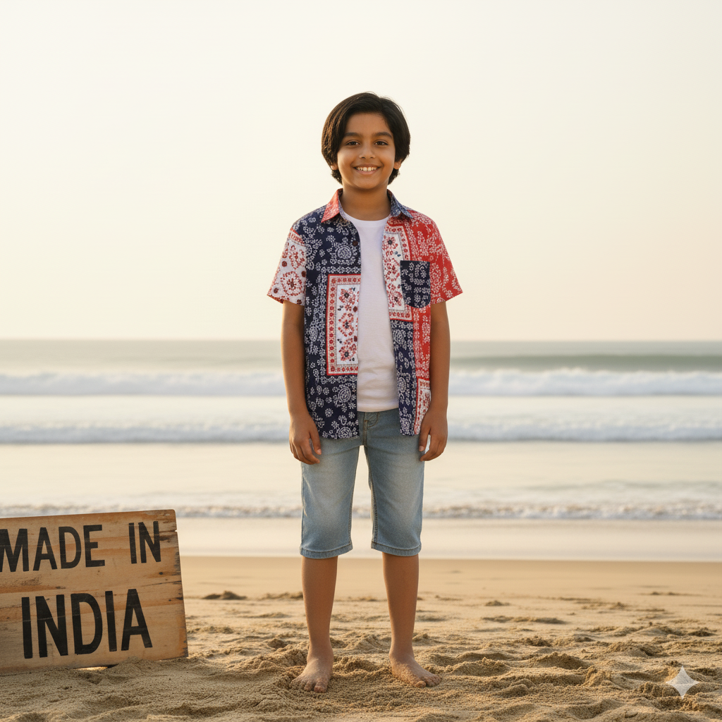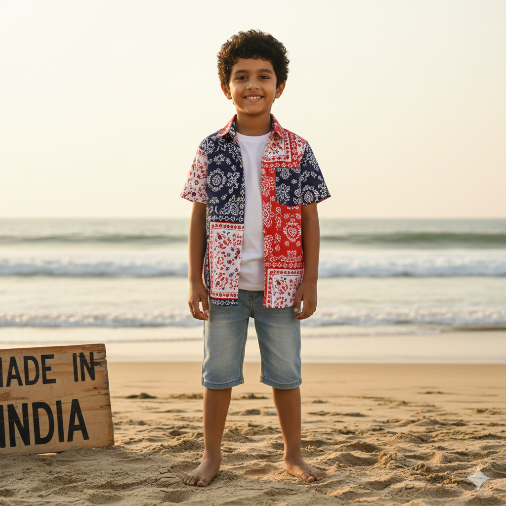 This bandana print shirt features trendy bandana pattern design. Made from lightweight cotton, it’s perfect for casual outings and family events. Comfortable and stylish for all seasons. Made in India.
