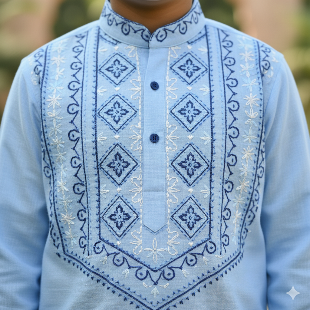 embroidered detail shirt for family outings and functions.