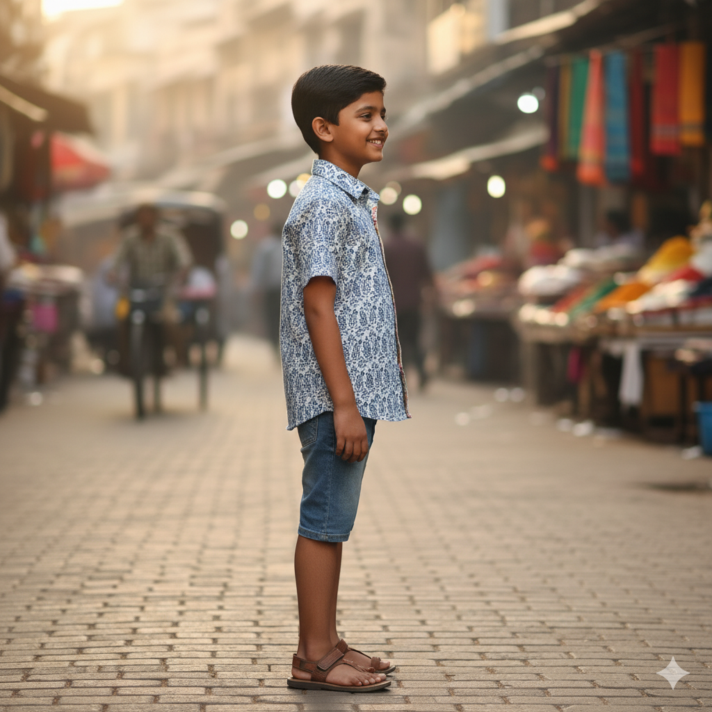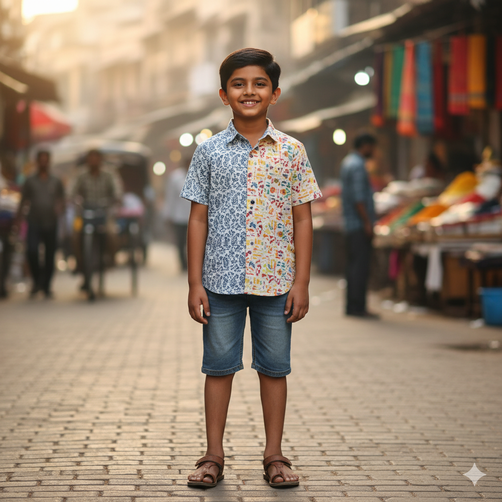 This reversible shirt features reversible with different patterns each side. Made from lightweight cotton, it’s perfect for casual outings and family events. Comfortable and stylish for all seasons. Made in India.