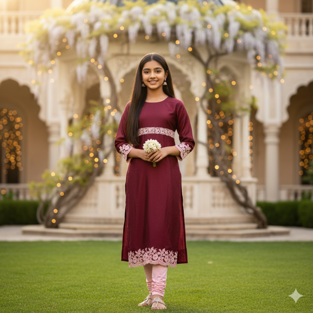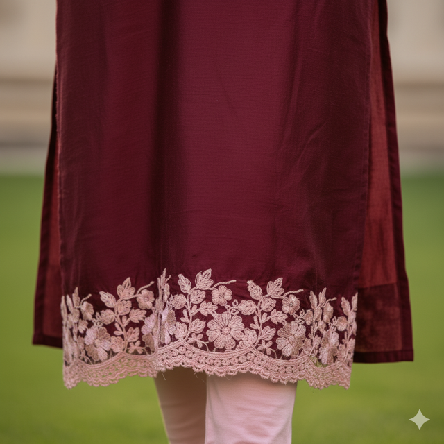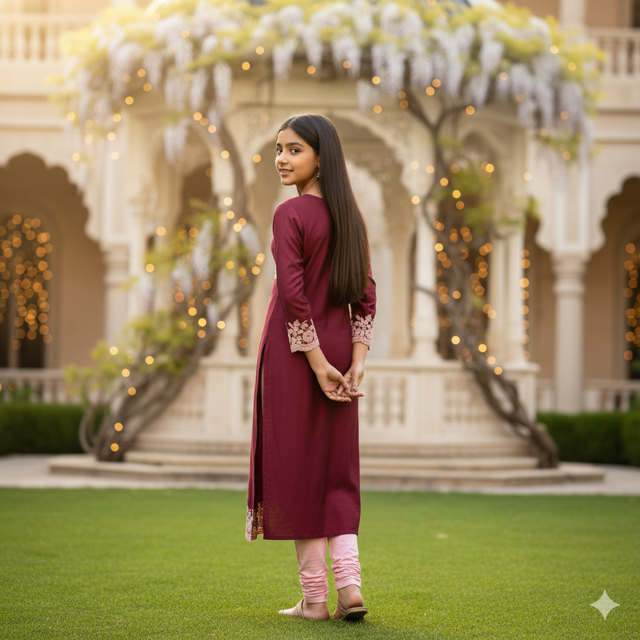 Be the first to review “Burgundy Silk Kurta Ensemble”