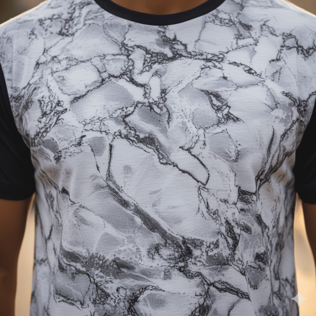 marble texture T-shirt with unique design for daily casual wear.