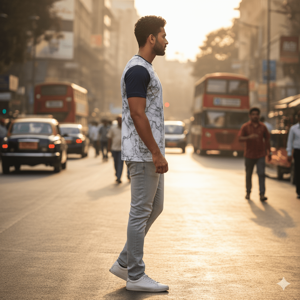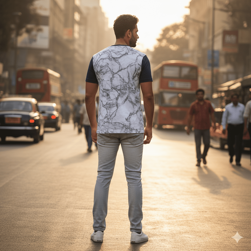 This marble texture T-shirt features modern marble stone-effect print. Crafted from soft breathable cotton with premium print quality, it stands out with its distinctive pattern and finish. Perfect for daily casual wear in Indian weather. Made in India.