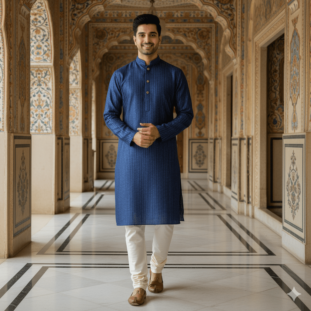 This striped silk kurta features premium silk with subtle stripes. Crafted from lightweight premium fabric, it brings traditional elegance to festive occasions. Perfect for weddings, family functions and ethnic Fridays. Made in India.