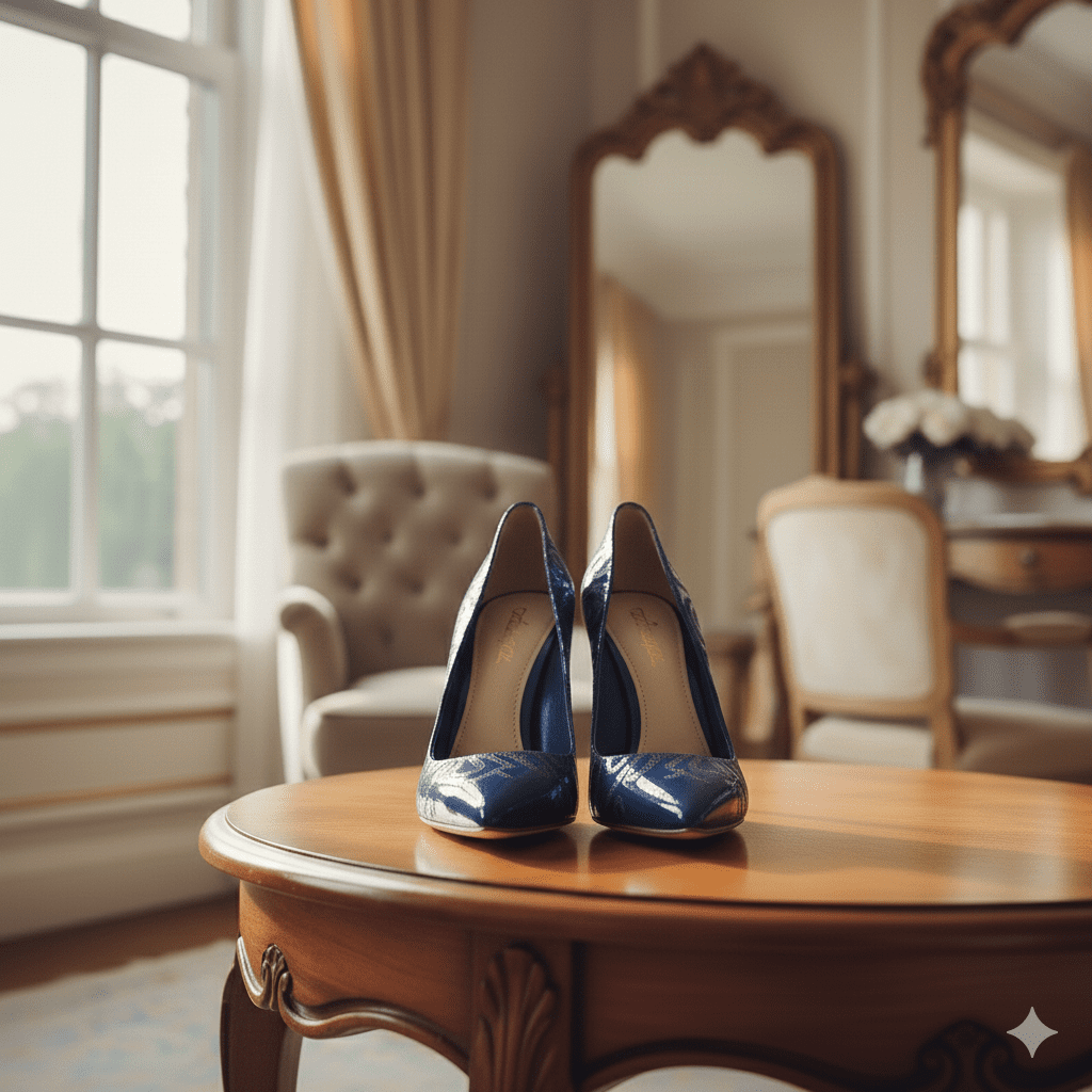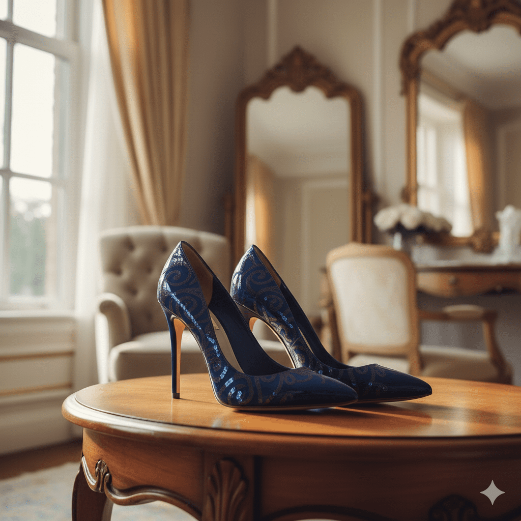 Elegant Navy Blue stilettos for women. Perfect for formal occasions. Made in India.