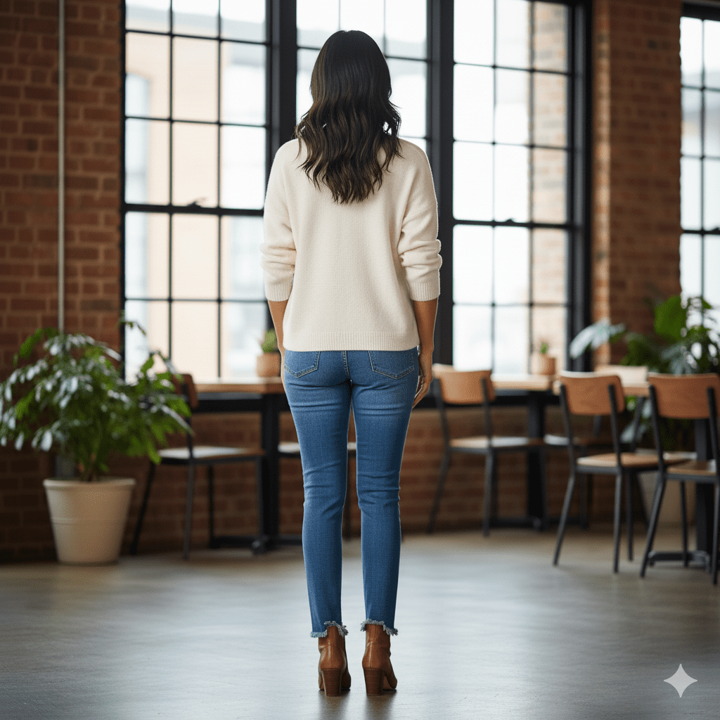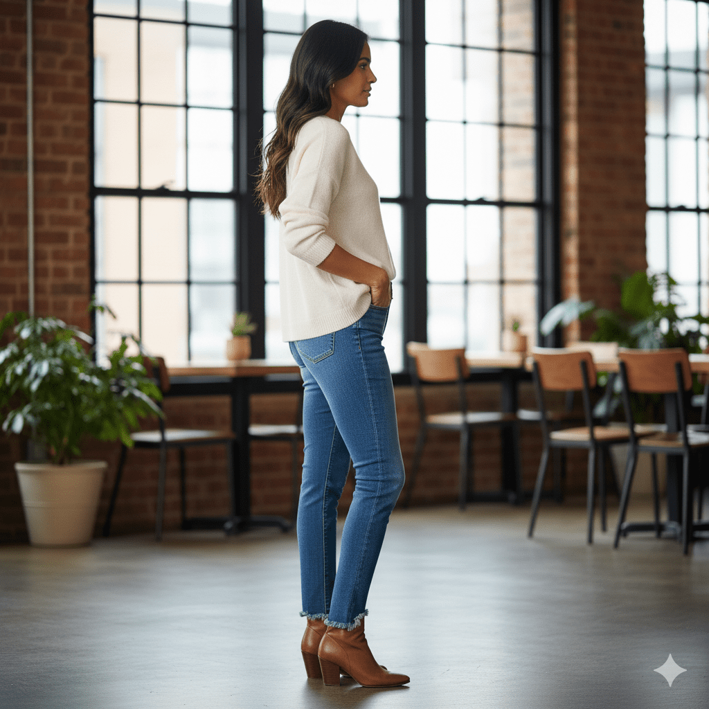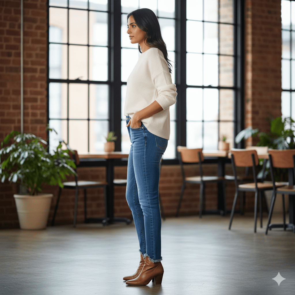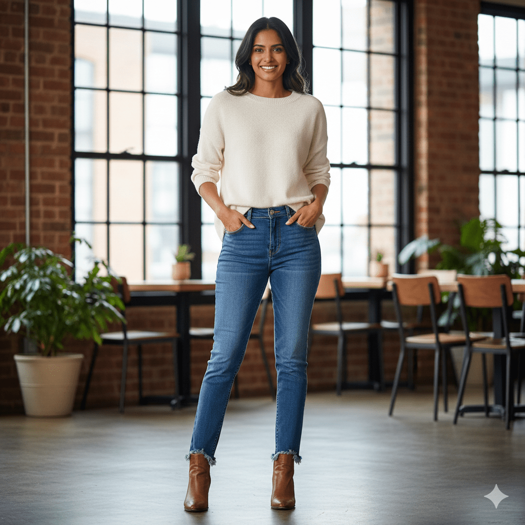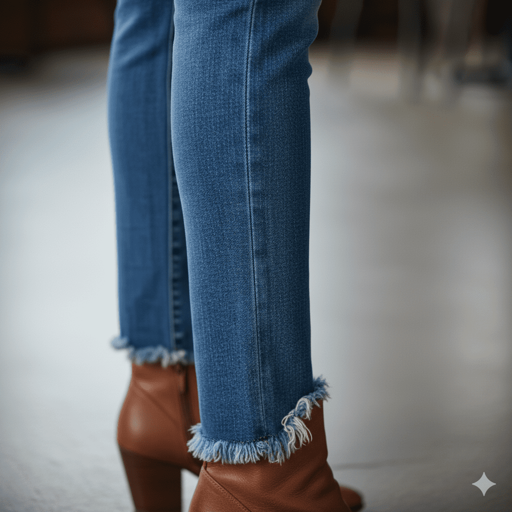 This frayed hem slim jeans features raw frayed hemline with slim silhouette. Made from premium stretch denim blend, it offers comfort and distinctive style for all-day wear. Perfect for casual outings and office days. Made in India.