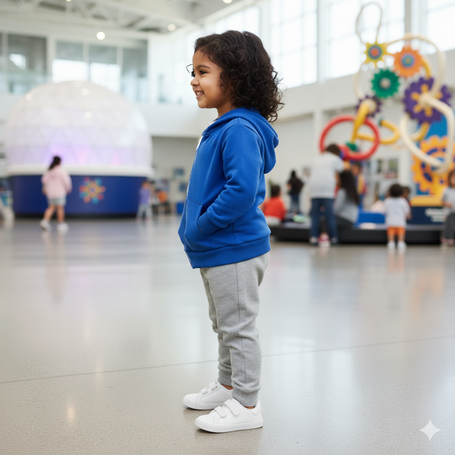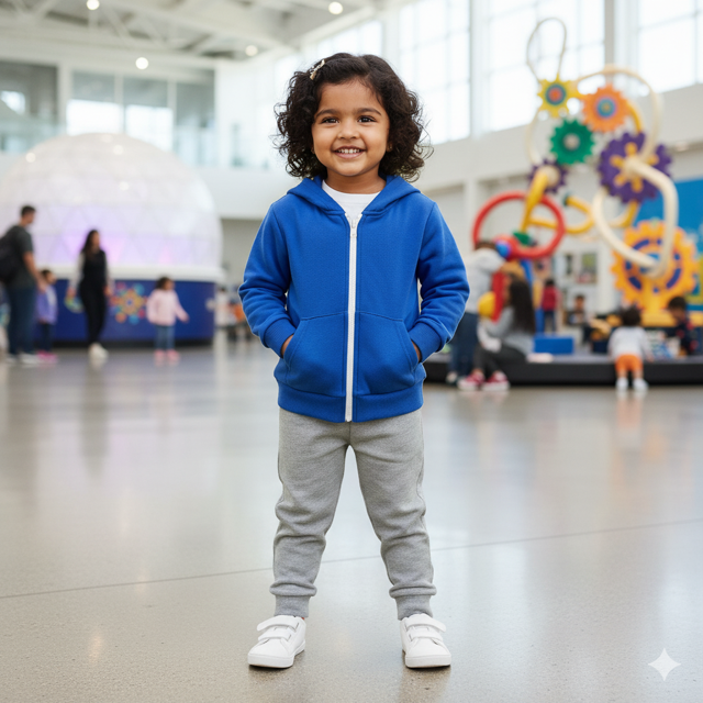 Cotton-poly fleece (280 GSM), kangaroo pocket, ribbed cuffs, drawstring, sporty style. Made in India.